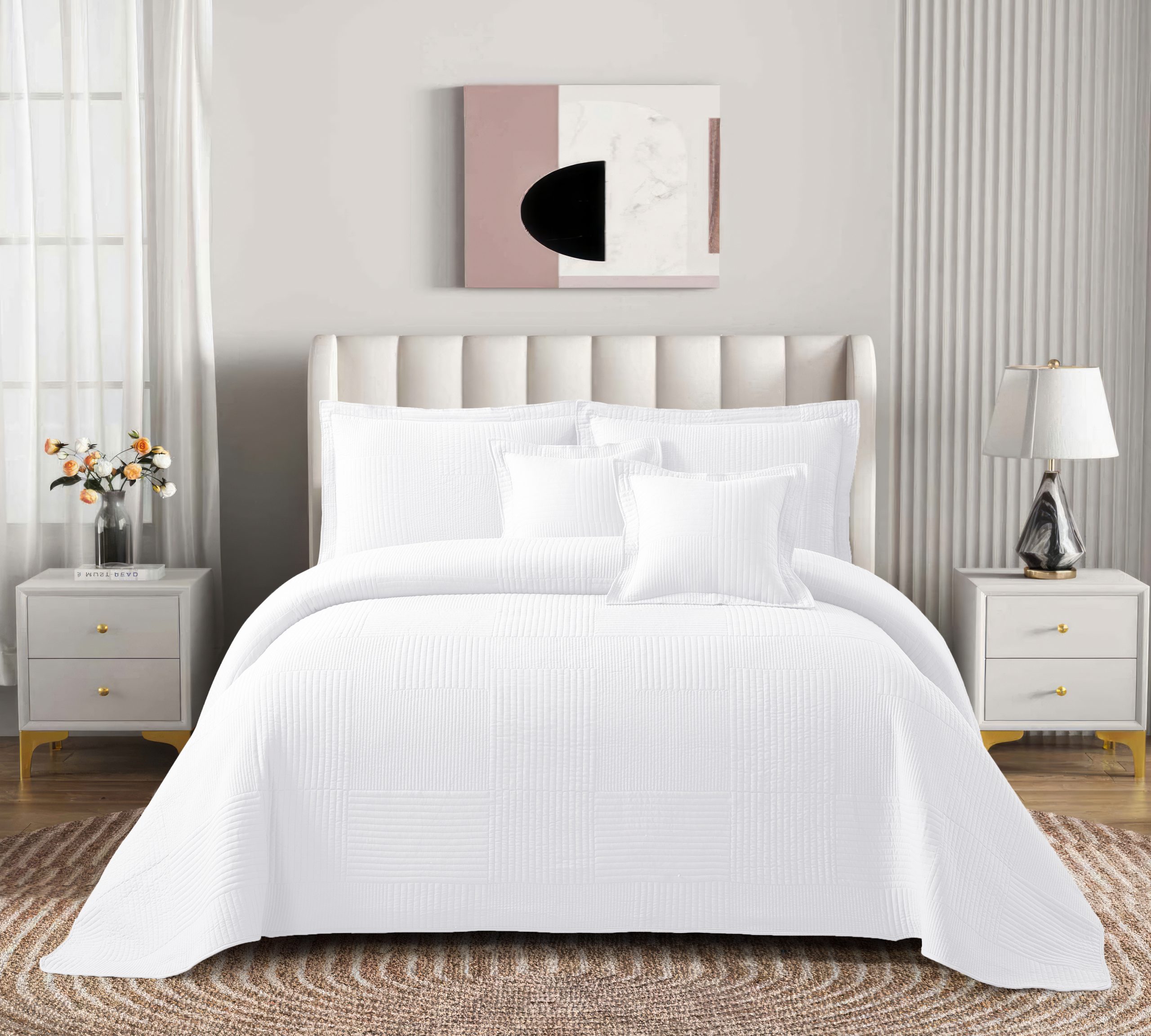 Colcha Real Tex Bordada con Terminación Recta Unicolor Blanco – 8004
