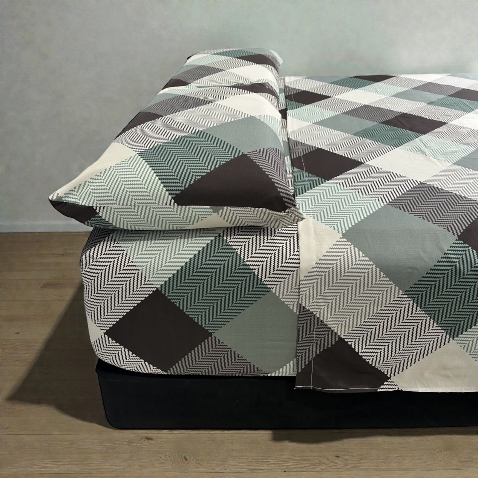 Juego de Sábanas Casa Real Tex microfibra estampada – Linea gris y verde