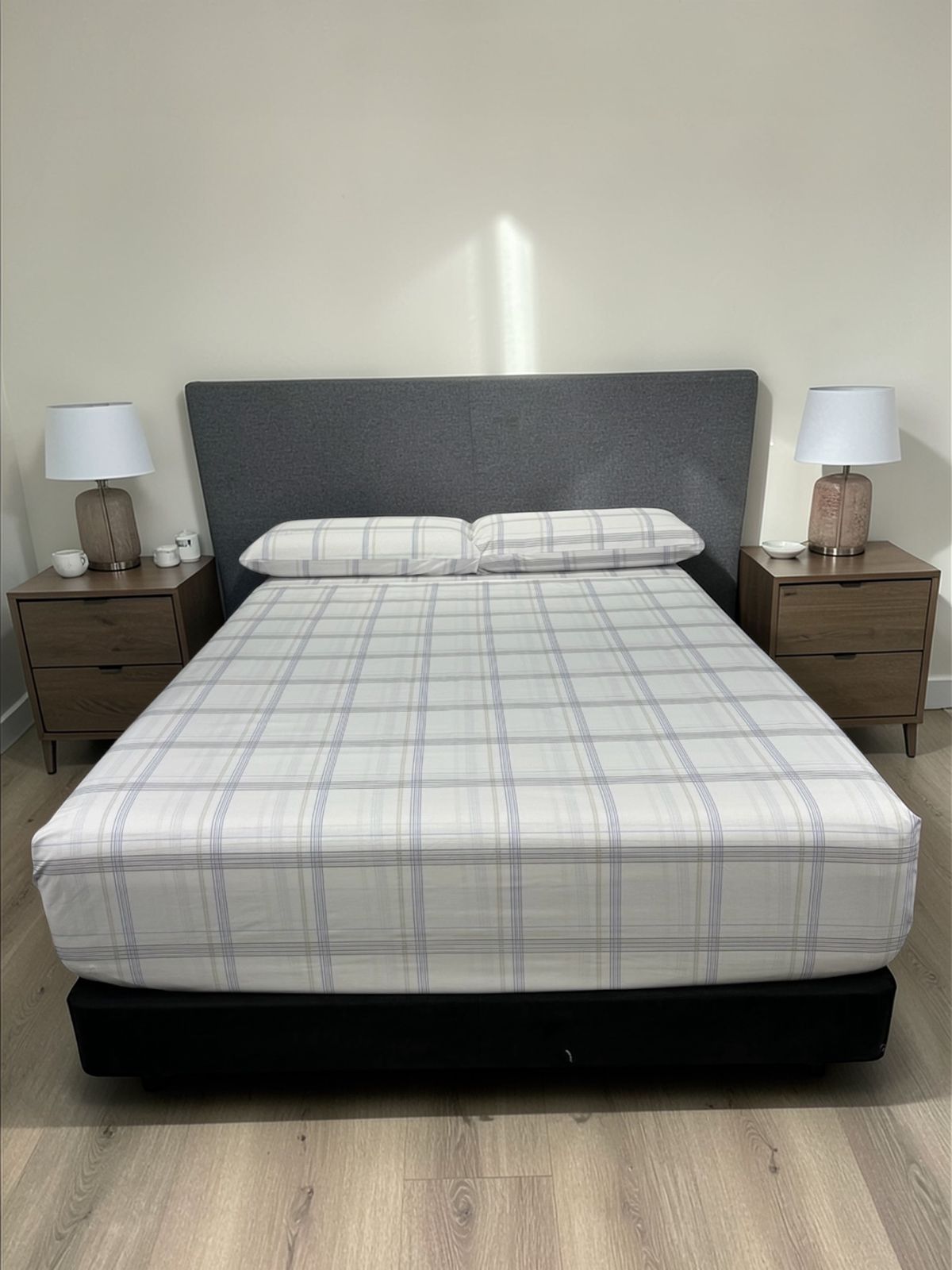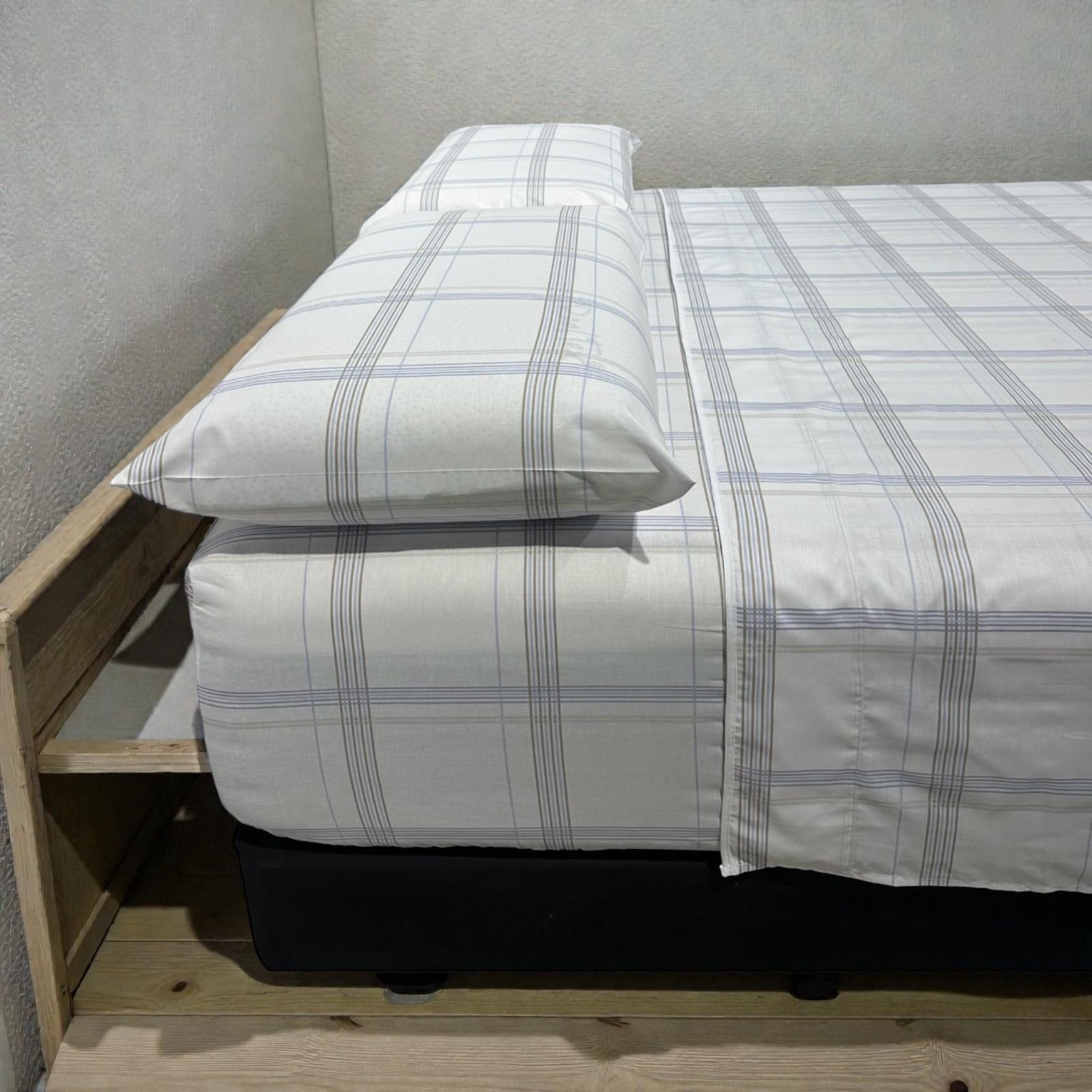 Juego de Sábanas Real Tex 180 Hilos Estampado 50% Algodón – 50% Poliéster, Cuadro Azul y Café