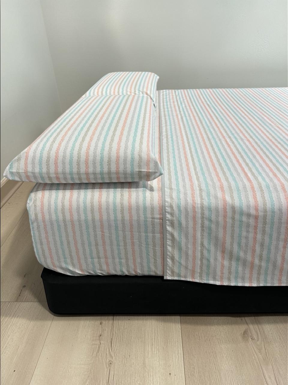 Juego de Sábanas Real Tex 180 Hilos Estampado 50% Algodón – 50% Poliéster, Lineas de Puntos Colores