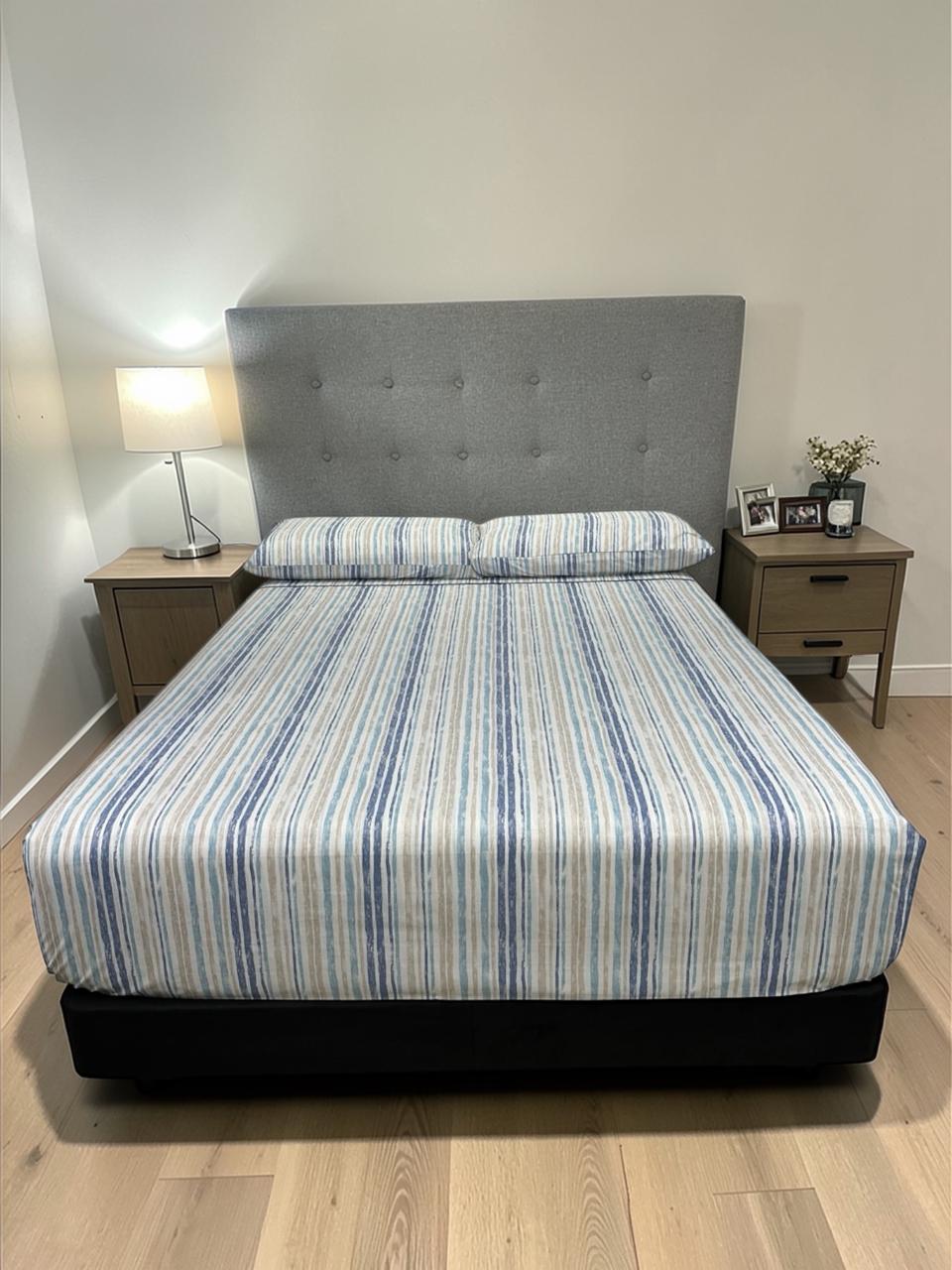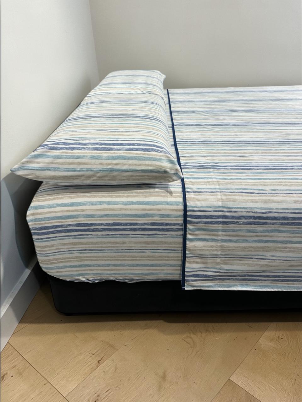Juego de Sábanas Real Tex 180 Hilos Estampado 50% Algodón – 50% Poliéster, Pincelada Cafe Azul